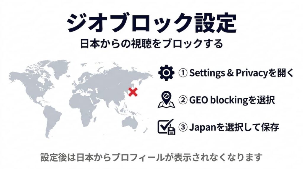 日本在住の配信者が身バレを防ぐためには、少なくとも日本をブロックしておくことを強くおすすめします。